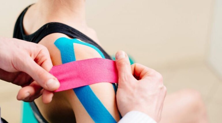Lateral epicondylitis (LE) affects individuals whose repetitive hand/wrist motions stress the extensor tendons at the lateral elbow, causing micro-trauma, tendon degeneration, and pain. It significantly disrupts daily activities and work productivity. While many treatments exist (e.g., physiotherapy, injections, splints), less invasive, low-cost options such as kinesiotaping have gained interest. KT is an elastic therapeutic tape applied to the skin that claims to improve proprioception, reduce muscle strain, assist lymphatic drainage, and support healing without restricting motion.